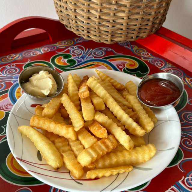 300 gramos de papas fritas, catsup y mayonesa (1 onza)