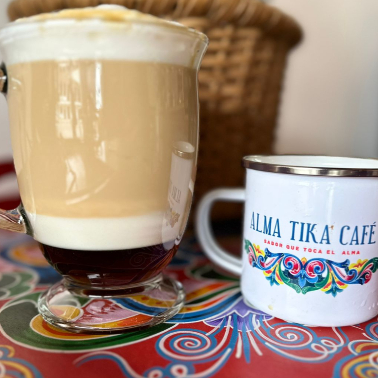 Nuestro delicioso cafe de especialidad acompañado de jarabe gourmet de Ameretto con cocoa de Costa Rica