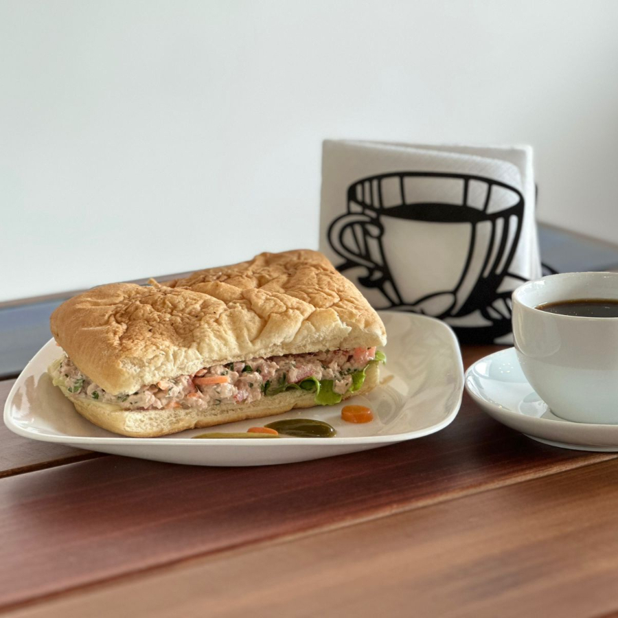 Pan artesanal con especias, atun mezclado con jitomate, cebolla y mayonesaa