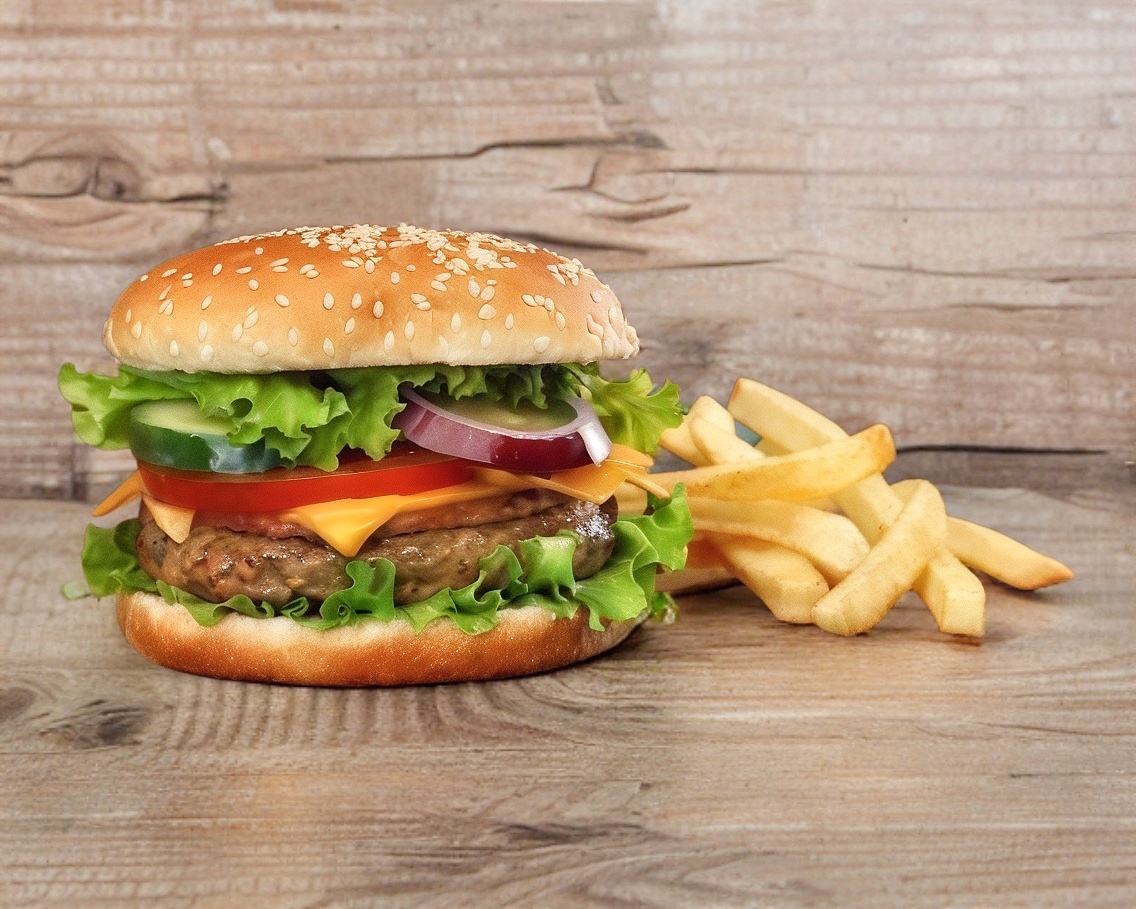 Sándwich con Pan Oroway Doble Piso, Cortado en Cuatro Partes, con Jamón, Bacon, Pollo, Queso, Lechuga, Otros Ingredientes acompañado de Papas A La Francesa ó Ensalada.