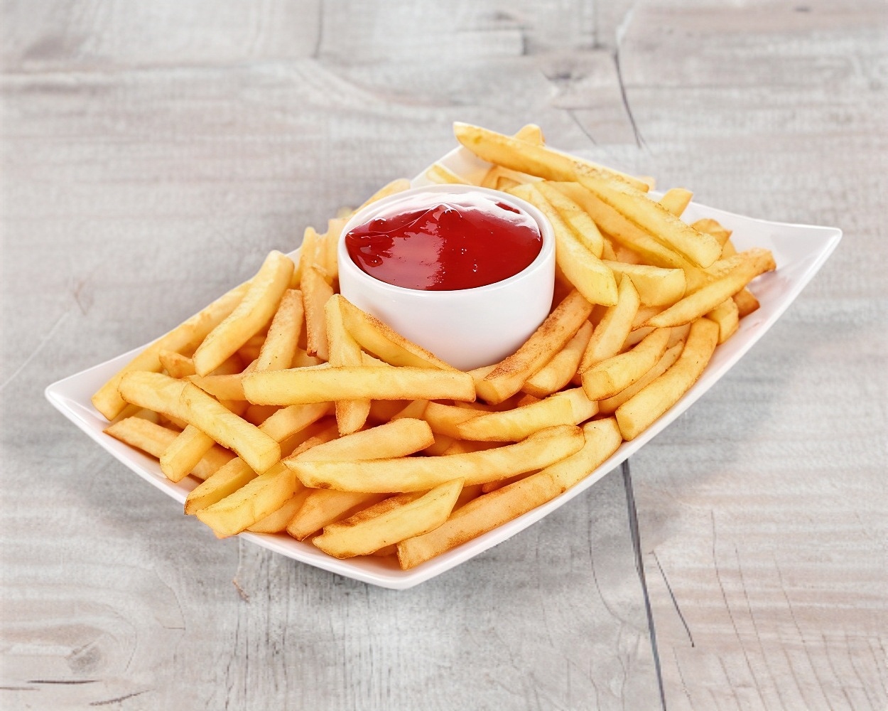 Papas 100% naturales cortadas estilo francés que se cocinan mediante fritura que quedan doradas y crujientes.