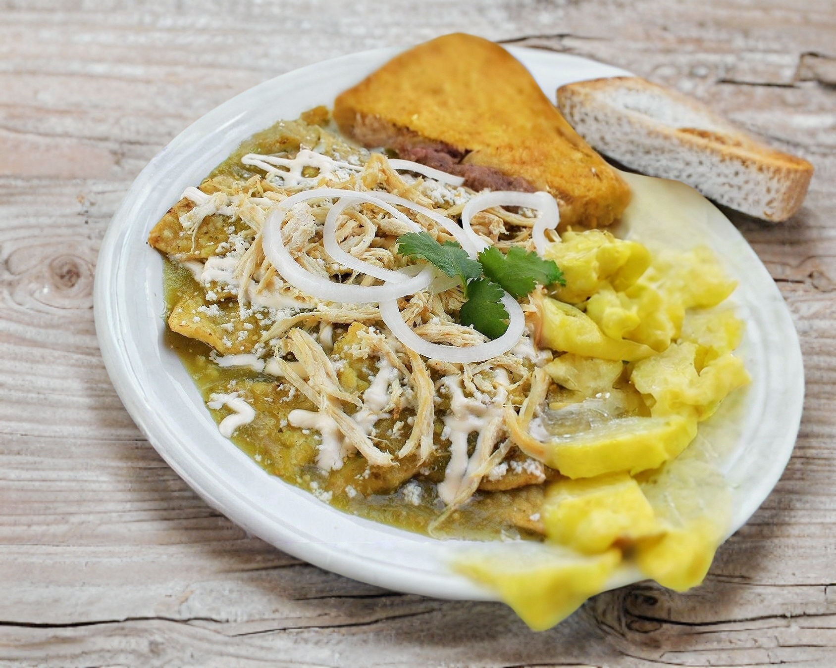 Exquisitos chilaquiles con deliciosa salsa, receta secreta de la casa. Ideal para una persona.