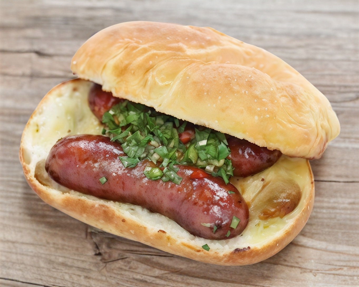 Una Exquisita Torta de Chorizo Argentino con Arrachera Marinada, Acompañada de Lechuga de Hoja, Rebanadas de Jitomate, Aderezo Ranch y Salsa Jalapeño de la Casa.