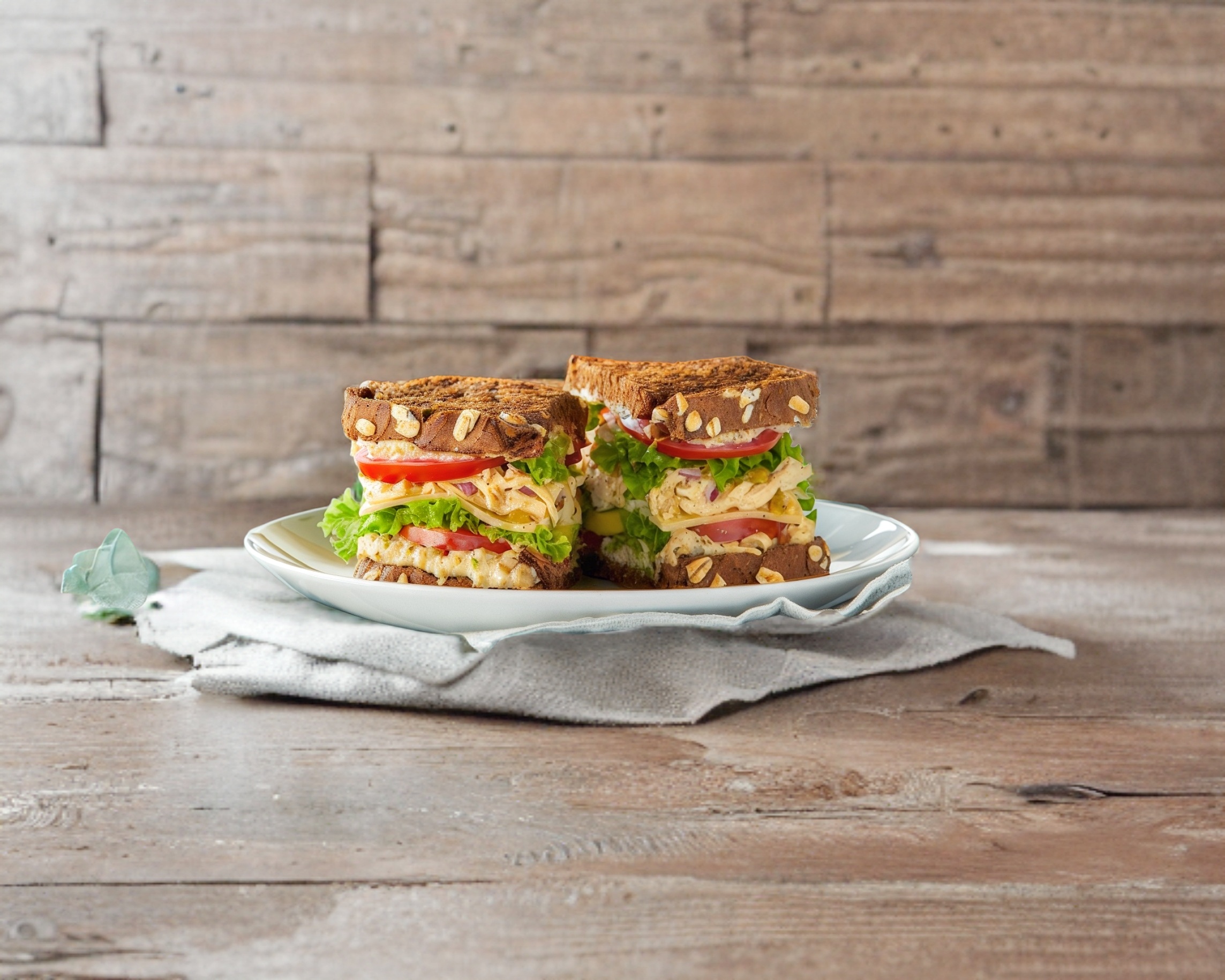 Pan Rústico Originario De Italia Con Un Gran Contenido De Aire En La Miga. Preparado Con Proteína De (Pollo o Pechuga De Pavo o Jamón o Chorizo Argentino) Acompañado De Queso Manchego, Lechuga De Hoja, Rebanadas De Jitomate, Aceite De Olivo Y Exquisito Aderezo Ranch.