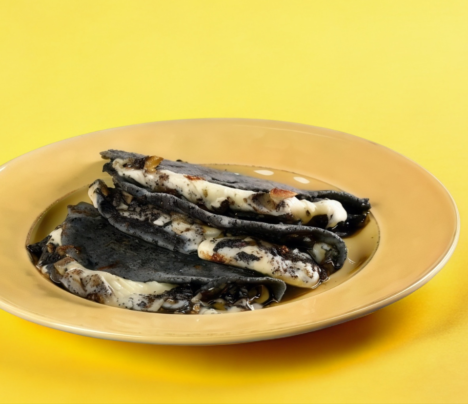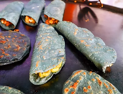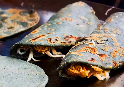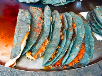 Quesadilla de huitlacoche al comal con salsa a elegir.