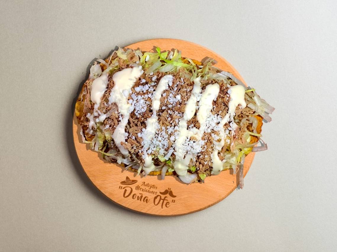 Preparadas con queso, crema, lechuga, queso manchego derretido y aguacate encima.