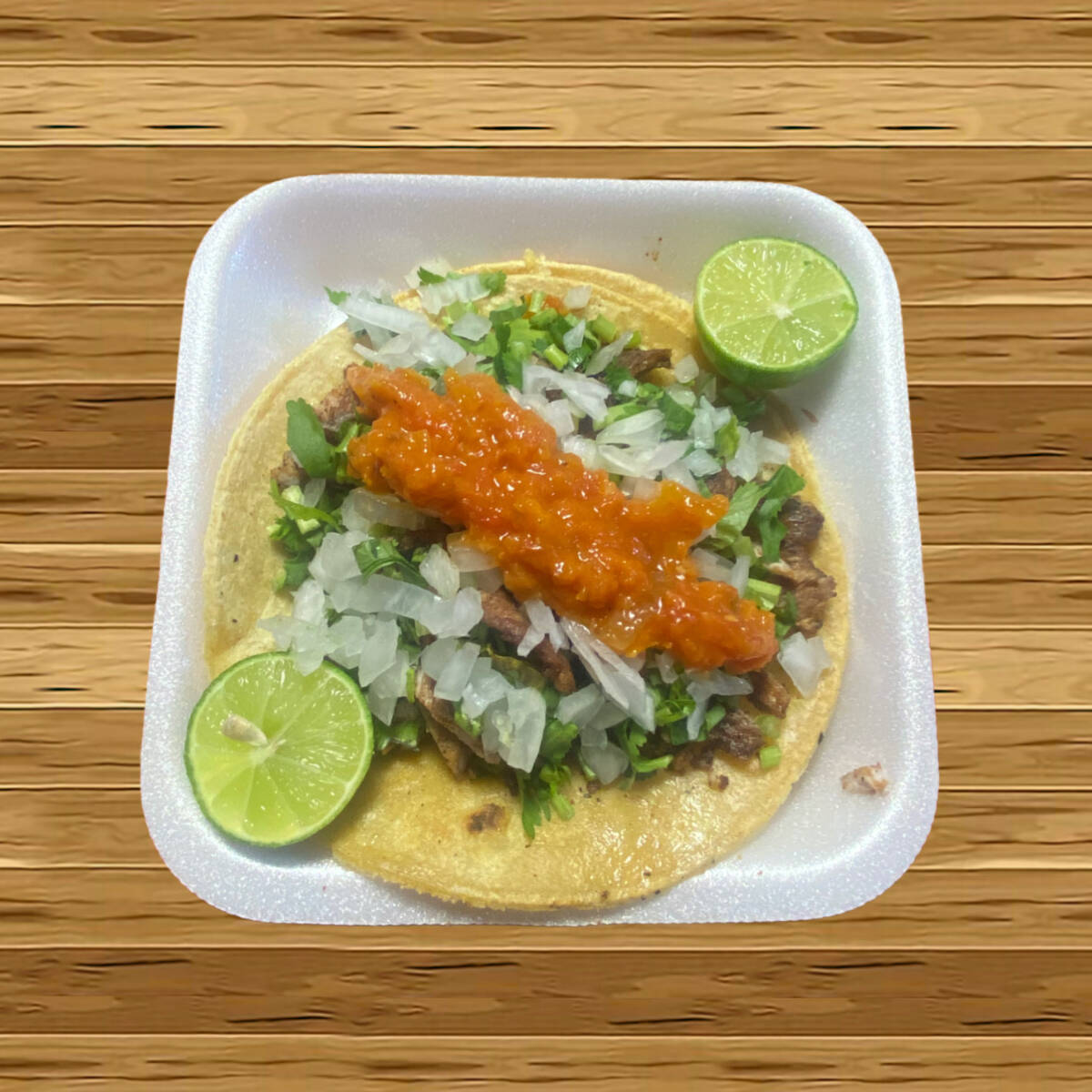 Taco De Bistec Con Doble Tortilla, Cebolla Cilantro Y Salsa
