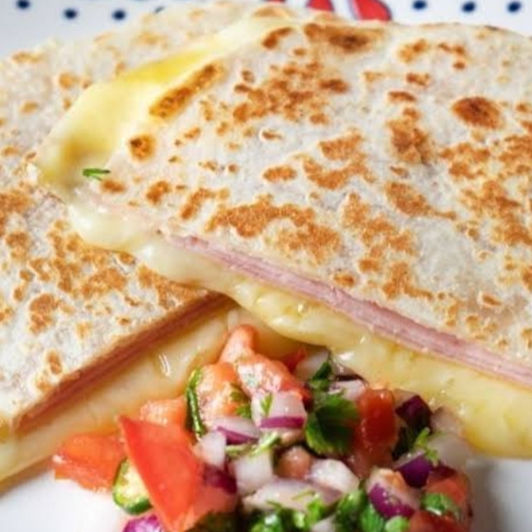 Tortillita, jamón queso Oaxaca, rajas de chiles jalapeños