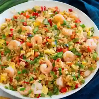 Arroz frito con verduras seleccionado, salteado con camarones limpios al estilo tradicional.