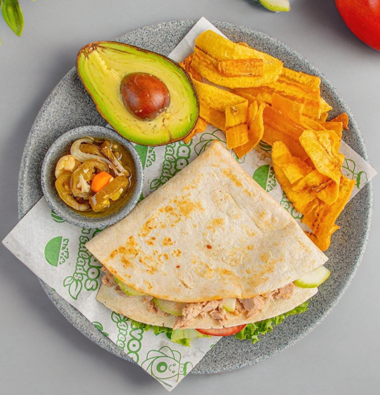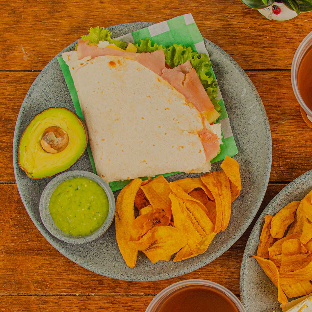 Delicioso pan de wrap relleno de atún, queso manchego con chipotle, cebolla, jitomate, pepino, aguacate y lechuga. Aderezado con salsa especial de la casa con un toque picosito.