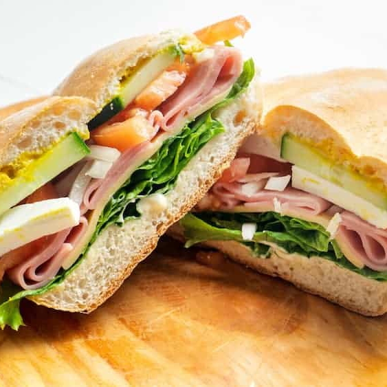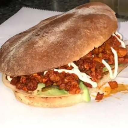 Pan con mayonesa, frijoles, lechuga, jamón, queso oaxaca, cebolla, jitomate, aguacate y chiles