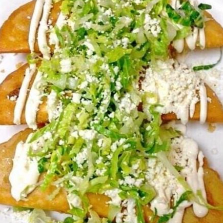 ENCHILADAS DE POLLO, EN SALSA VERDE CON LECHUGA, CREMA Y QUESO