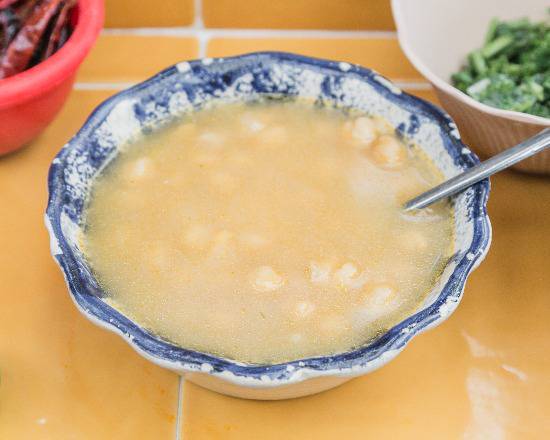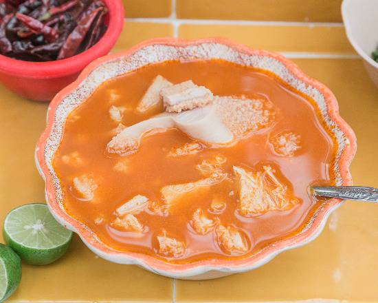 850ml. de deliciosa pancita acompañada de cebolla, limones, oregano y chile de arbol asado