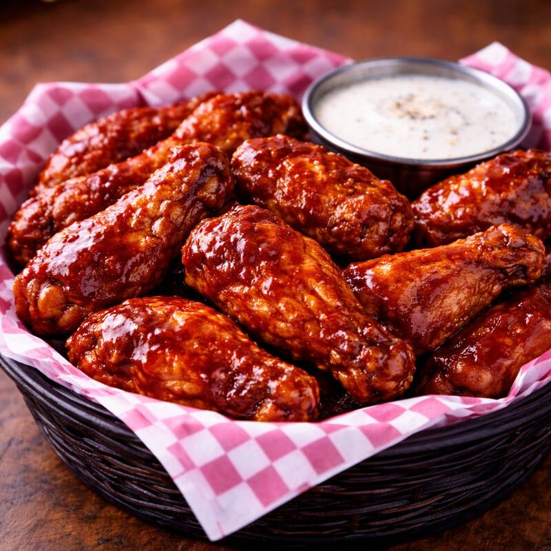 Alitas sazonadas en casa crujientes, con la salsa de tu elección.
