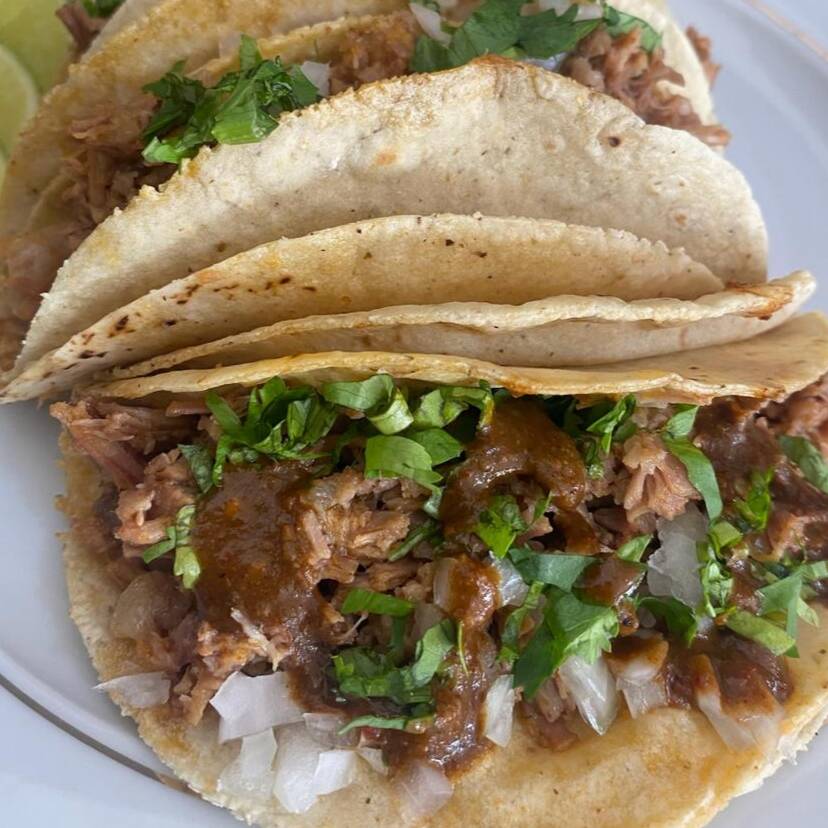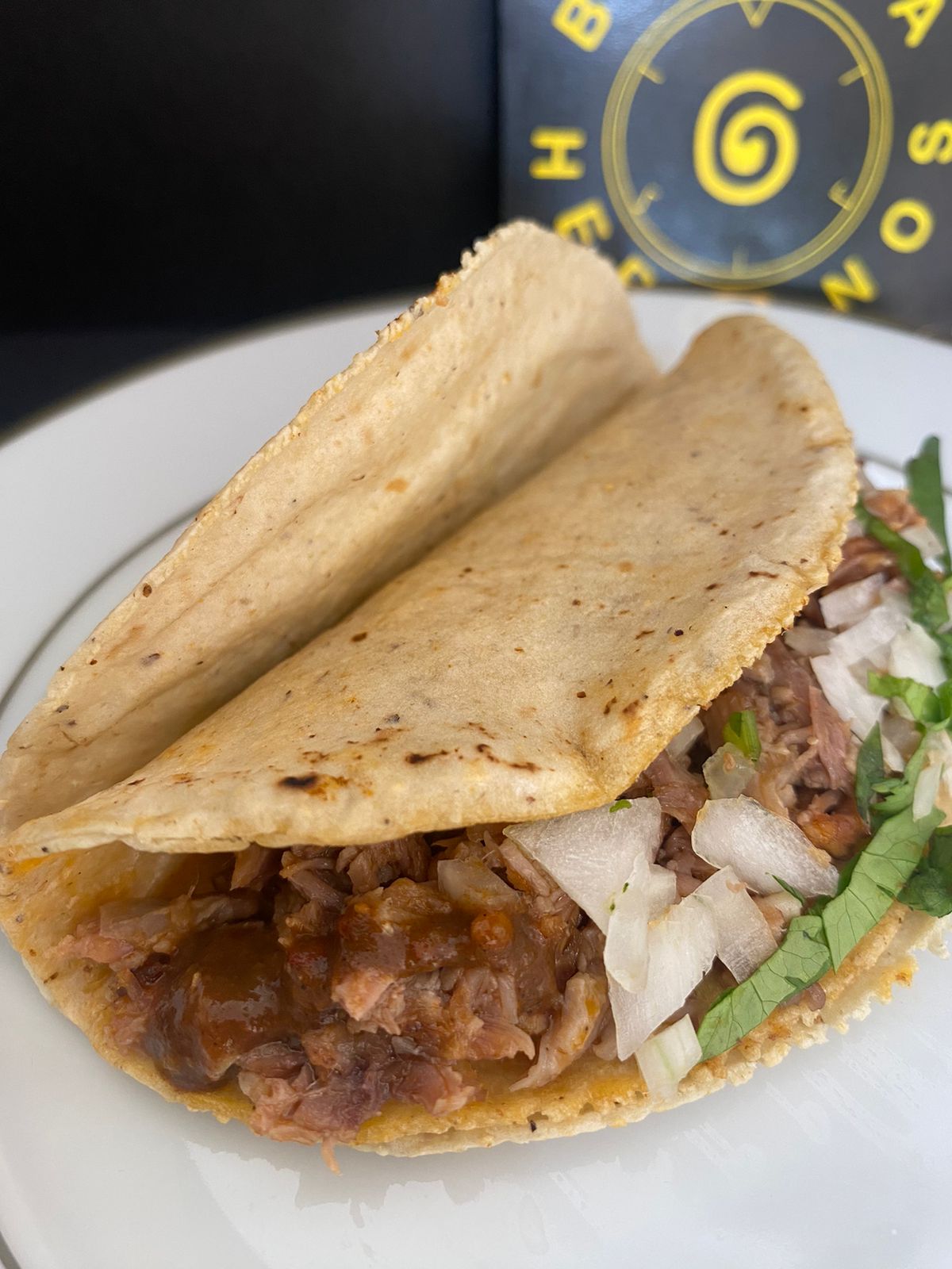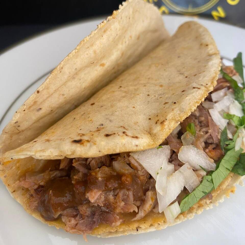 Taco con 2 tortillas del numero 14 y porción de 33g de carne de birria de res