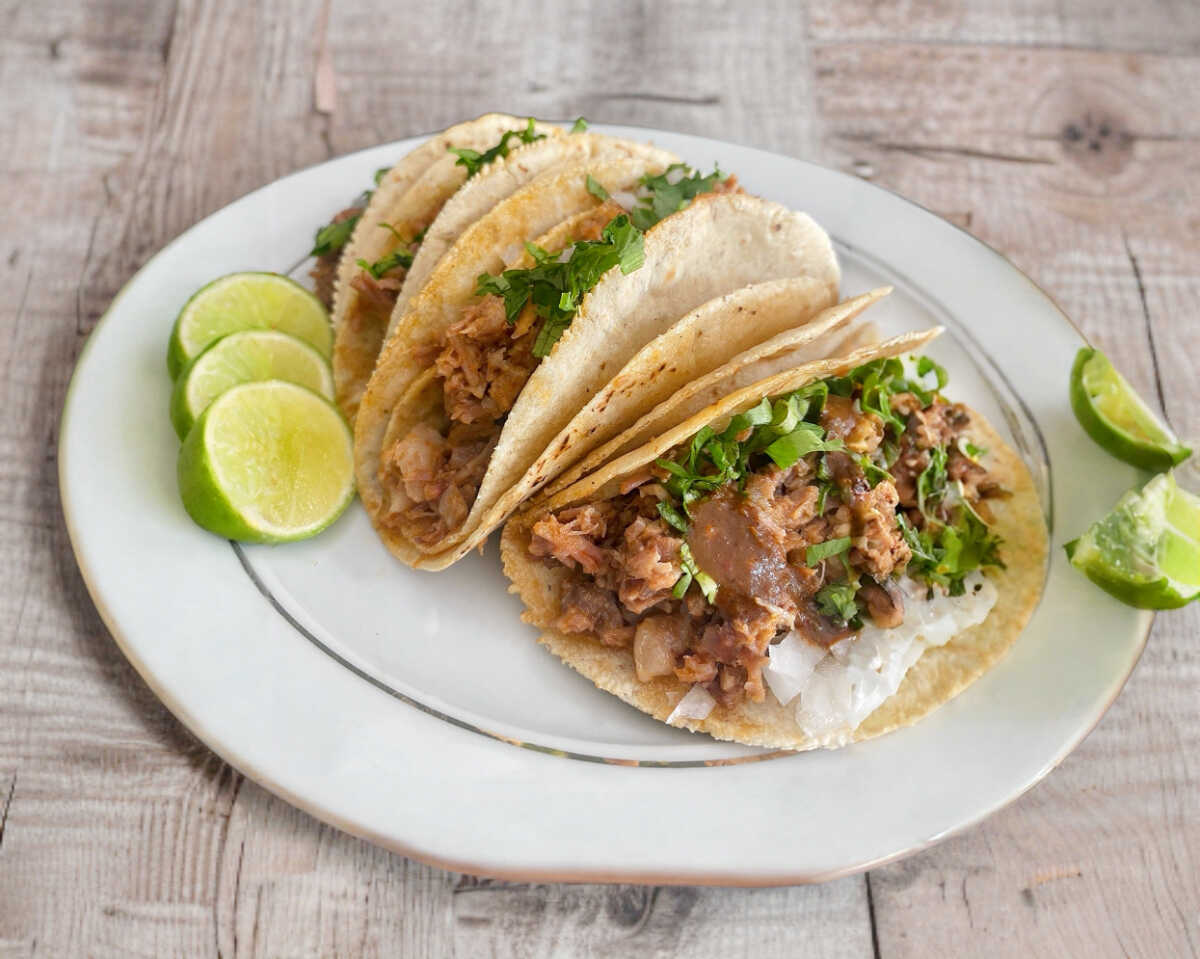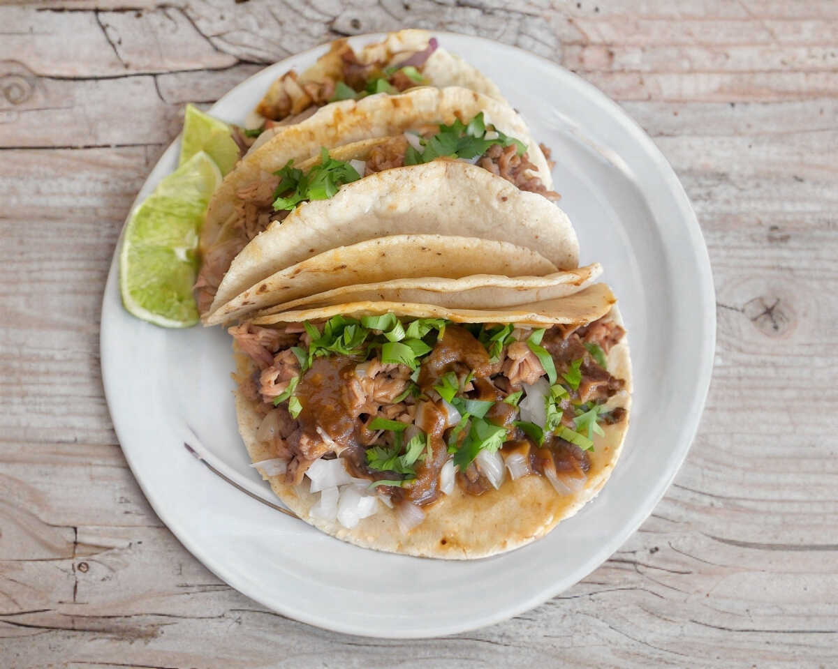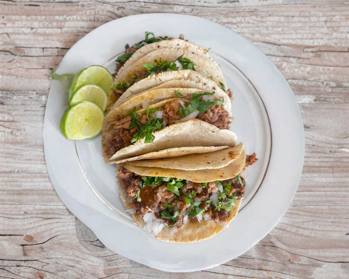 Taco con 2 tortillas del numero 14 y porción de 33g de carne de birria de res