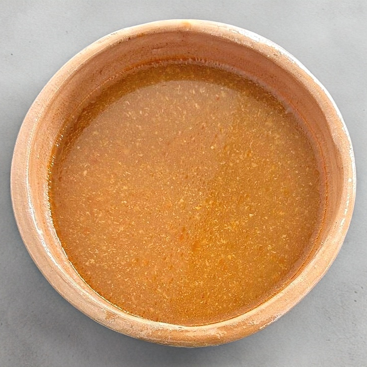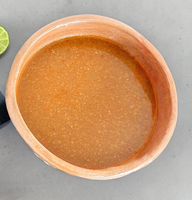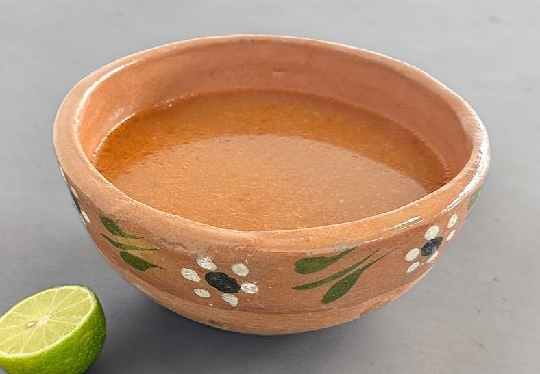 Consomé de res sin proteína servido en un recipiente de 1 L.