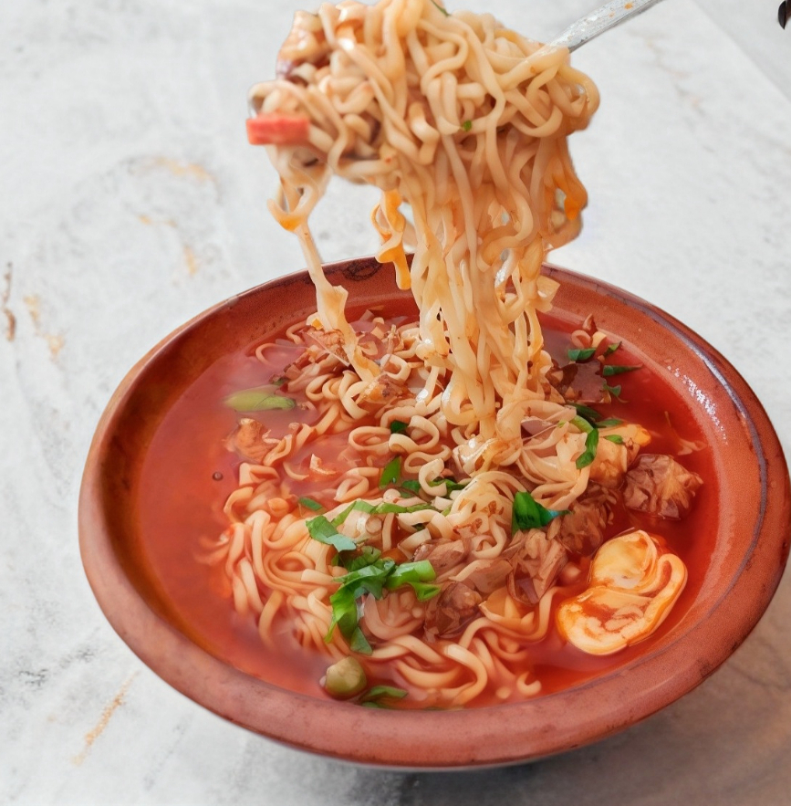 Ramen acompañado de 100g de carne con queso oaxaca y 3/4 de consome.