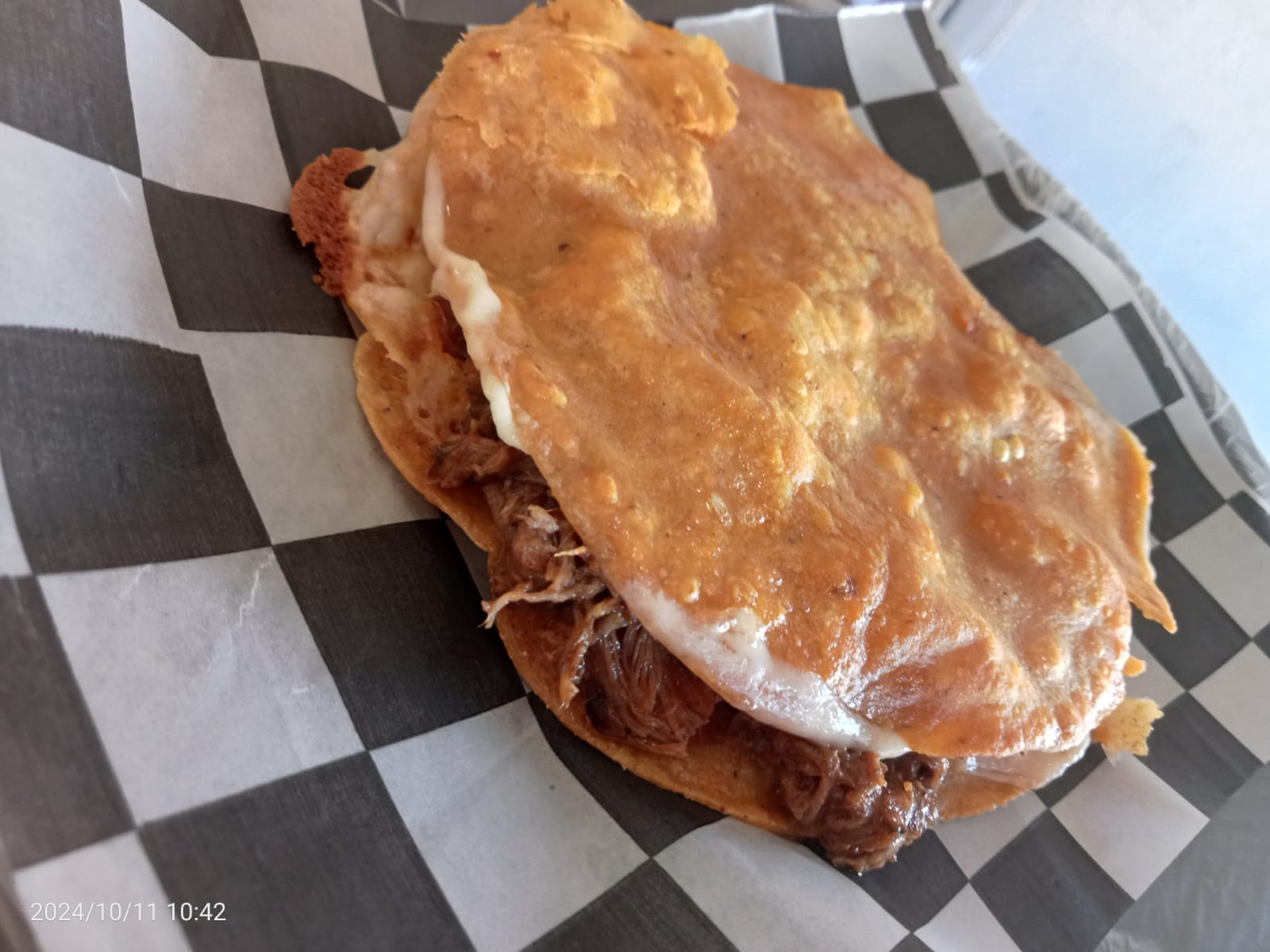 Tortillas de maíz con queso en cada tortilla y carne de birria