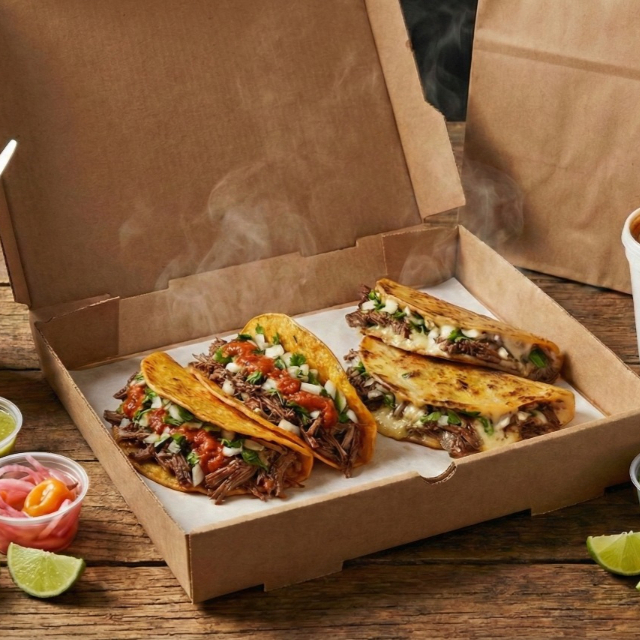 Sencilla pero perfecta. Tortilla de maíz recién hecha, costra de queso asadero y nuestra birria selecta. El equilibrio exacto.