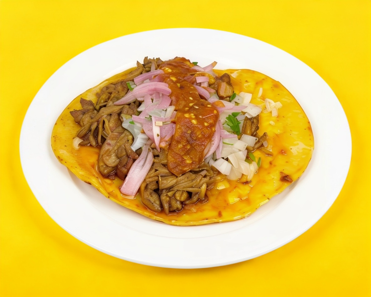 Elaborada con birria de res, queso fundido, aguacate, jitomate y cebolla morada con habanero.