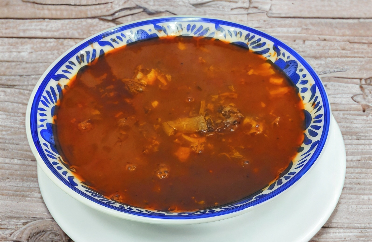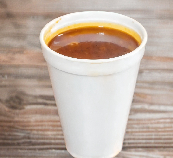 Medio litro de consomé de birria.