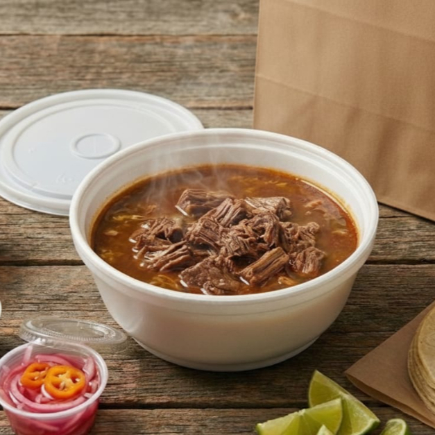 ¡S.O.S. atendido! 1 Kg de Birria (Res/Chivo) + 2 Lts de Consomé reparador + Refresco Familiar 2L + Tortillas, salsas y limones. Nadie se queda con hambre (ni con cruda).