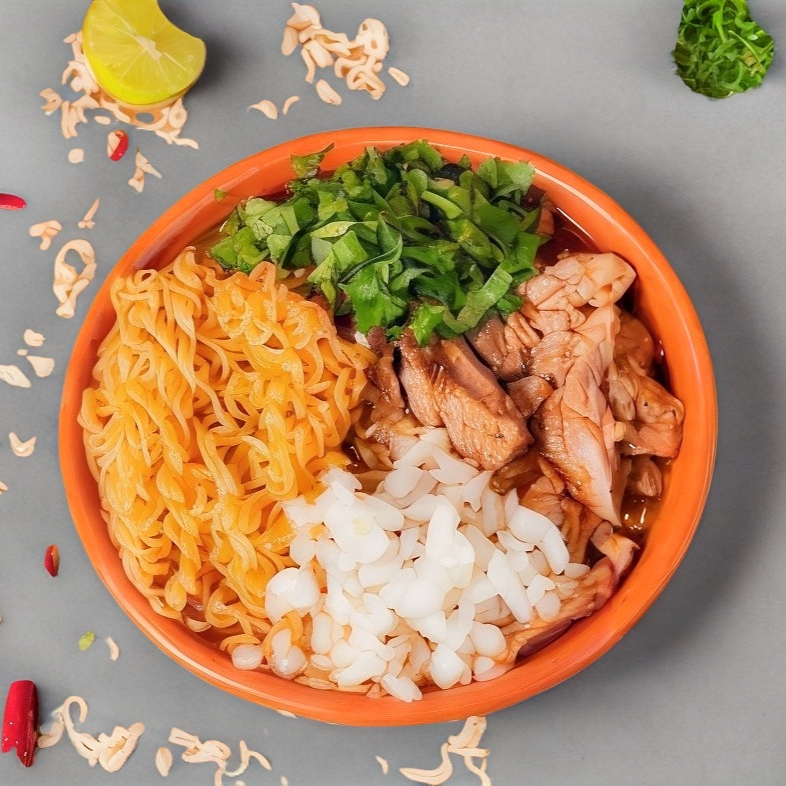 Pasta ramen con el clásico consomé y carne de la birria de res, 16 oz, carne de res.