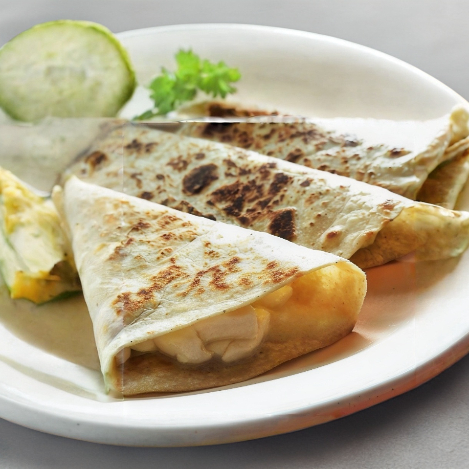 Tortilla de harina o maíz rellena de queso mozzarella.