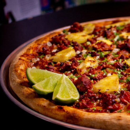 Pastor bien dorado, especias marcadas y queso derretido. Sabor fuerte, antojo serio.