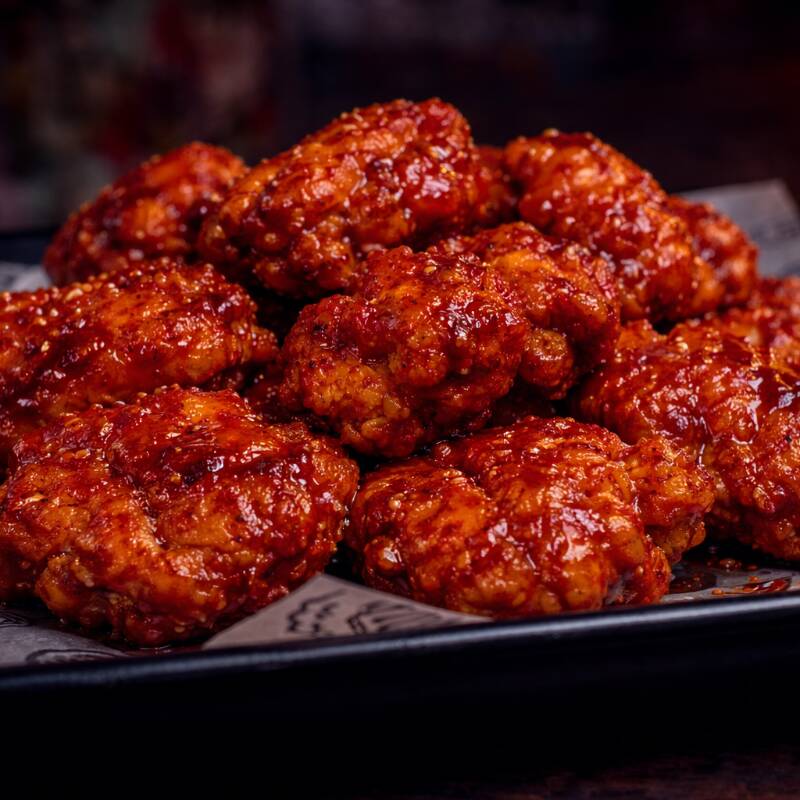 Boneless crujientes bañados en salsa intensa. Jugosos por dentro, violentos por fuera. No vienen a gustarte. Vienen a dominarte.