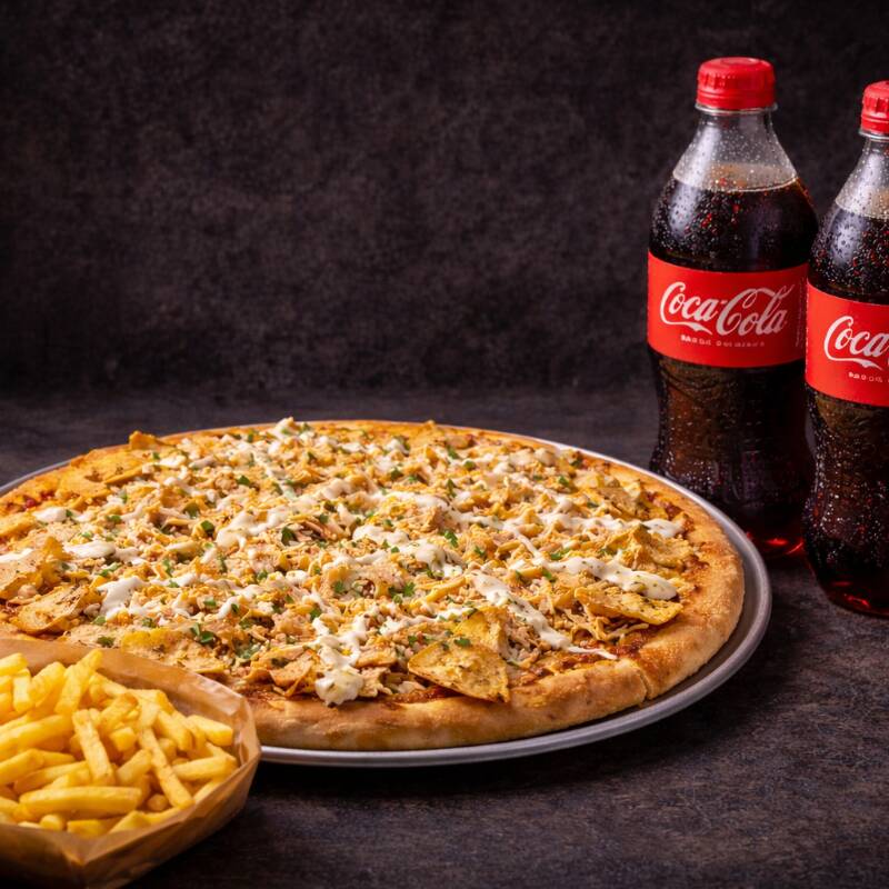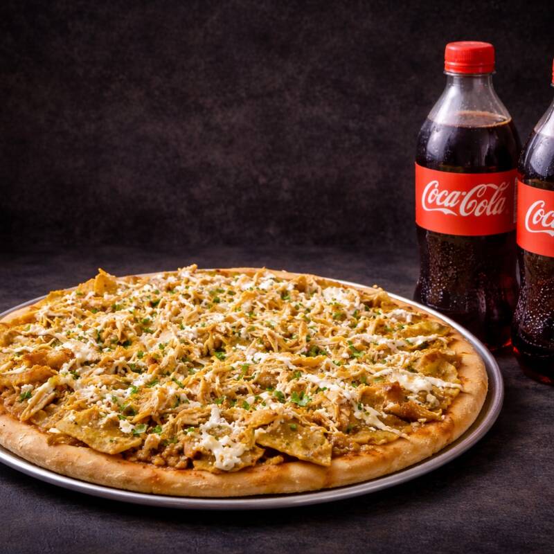 Pizza Premium Black (Suadero, Pastor, Chilaquiles o 4 Quesos – 35 cm) + 2 refrescos personales 600 ml