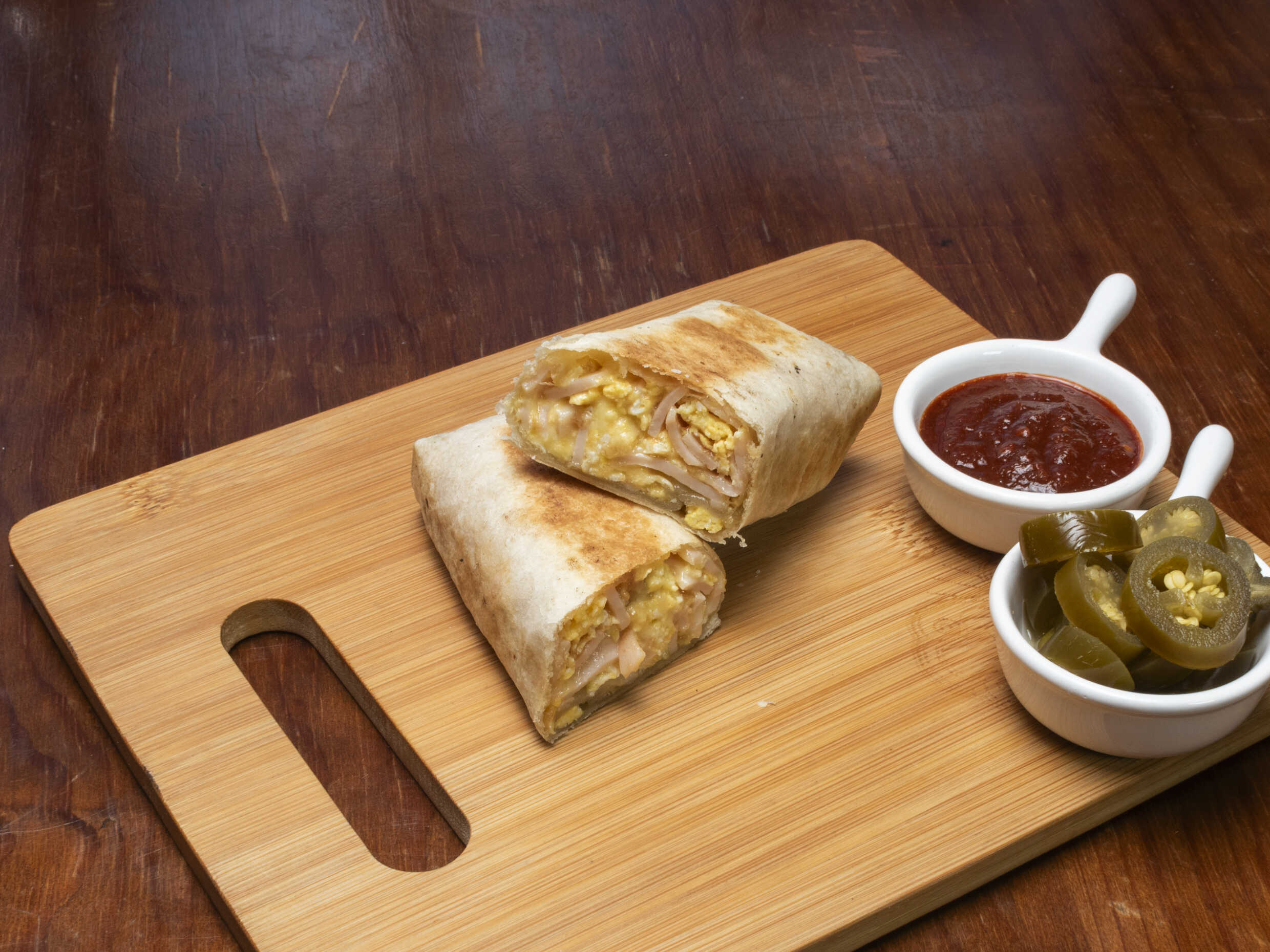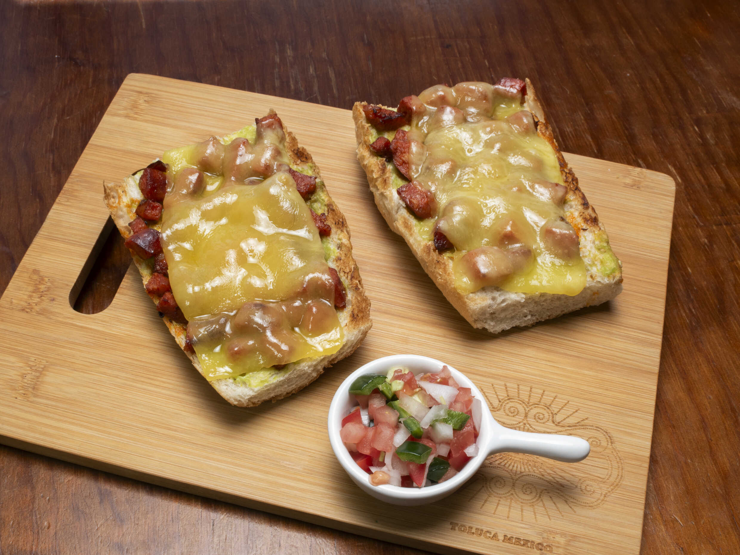chorizo español y queso chihuahua incluye ración de fruta, jugo ó café