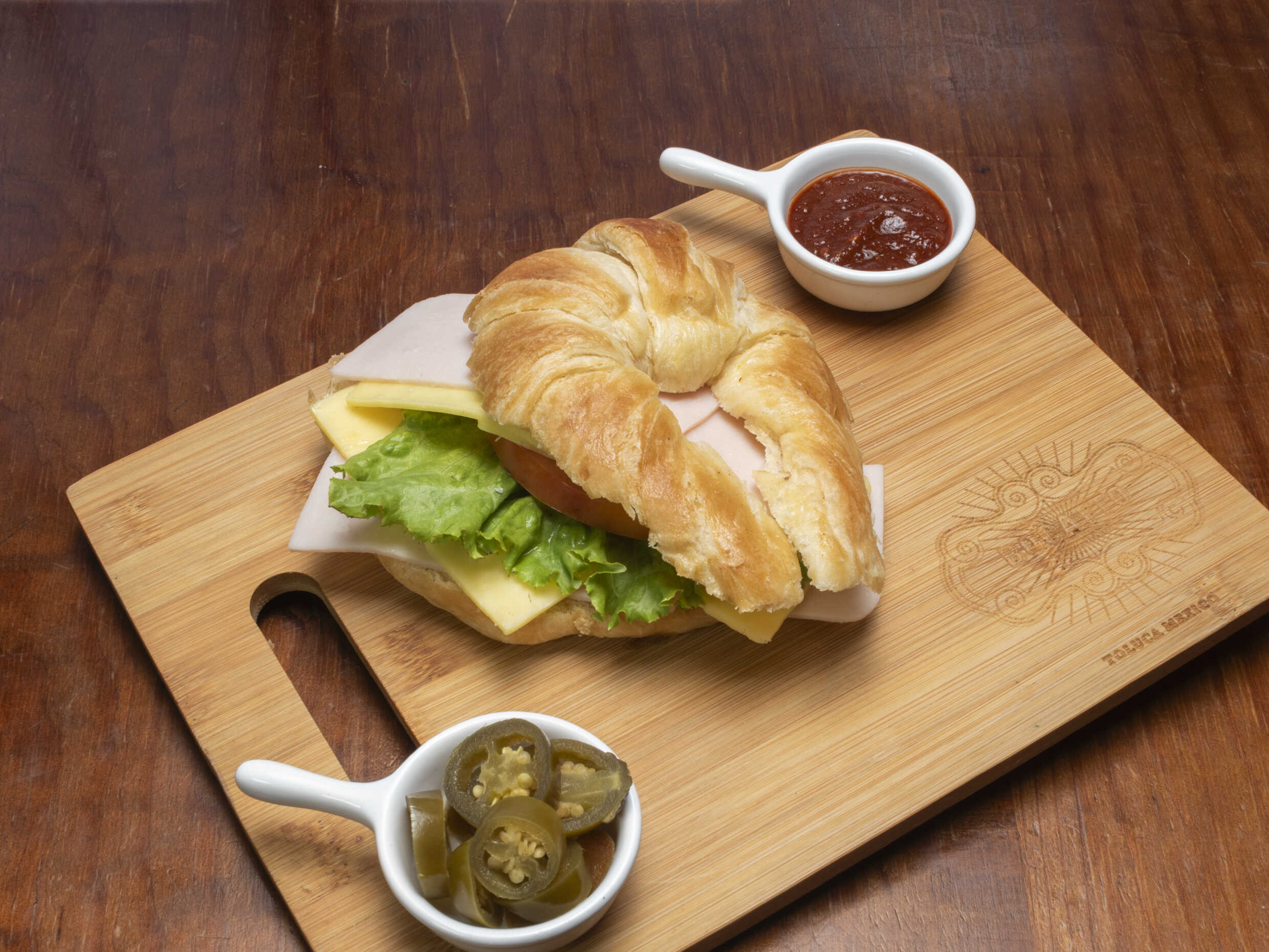 roastbeef, queso maasdam y queso gouda incluye ración de fruta y jugo ó café