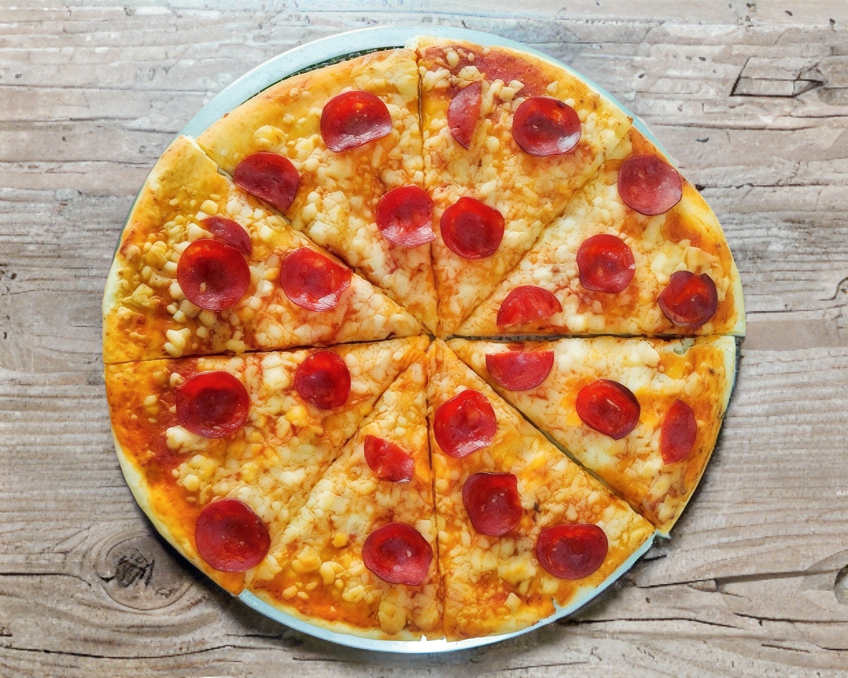 Queso mozzarella, salsa pomodoro, salami, pepperoni, jamón y tocino ahumado.