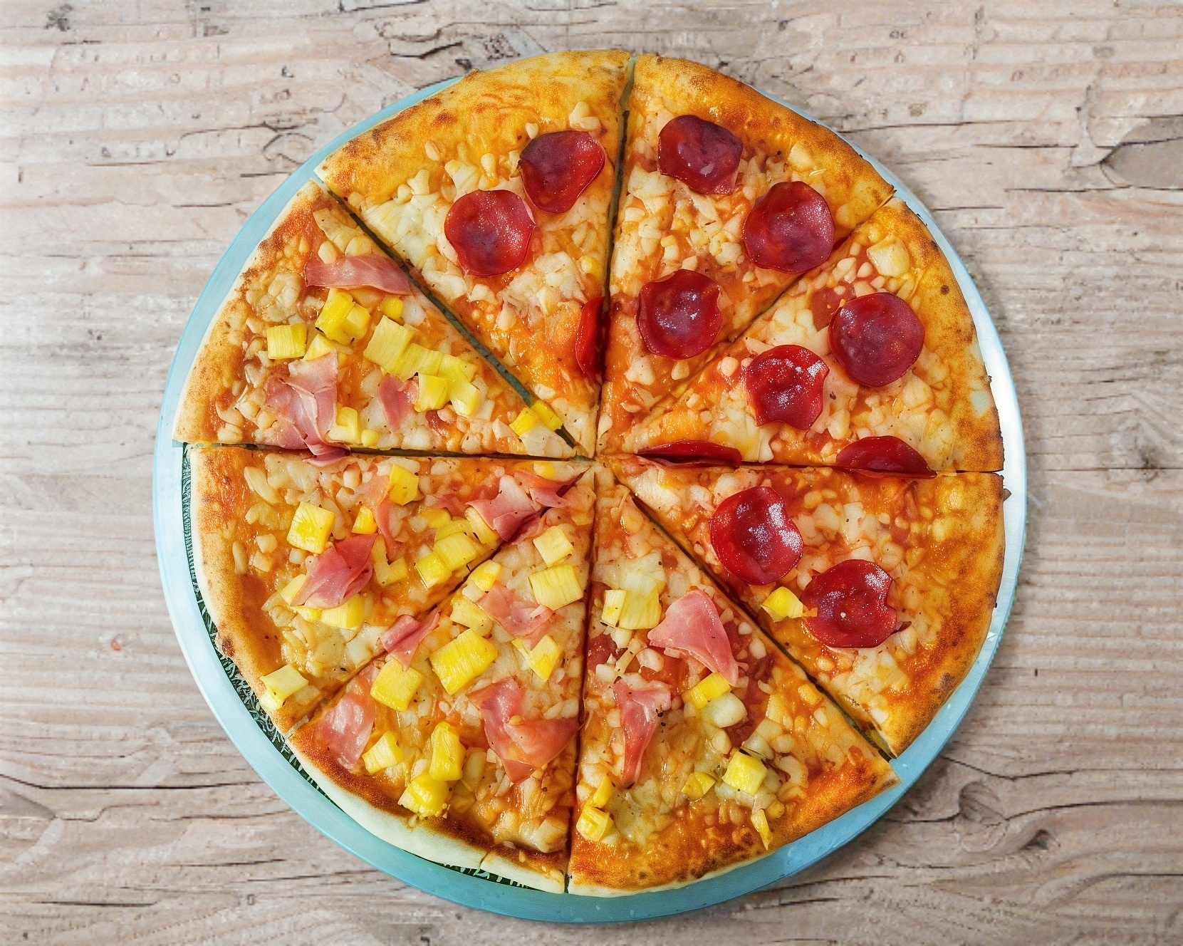 Pizza Mitad Pepperoni y Hawaiana Grande