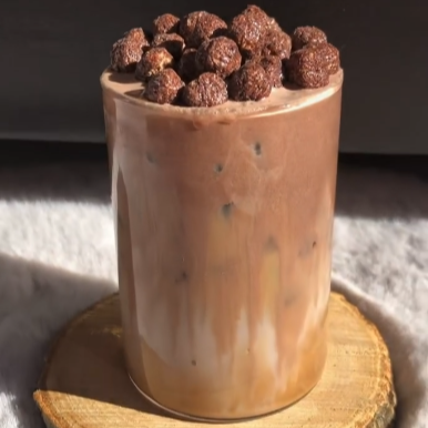 Café con leche y chocolate Nesquik, dulce y cremoso.