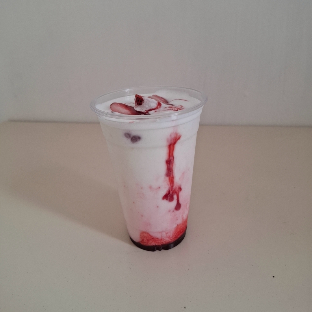 Deliciosa malteada de leche con un toque de fresa.