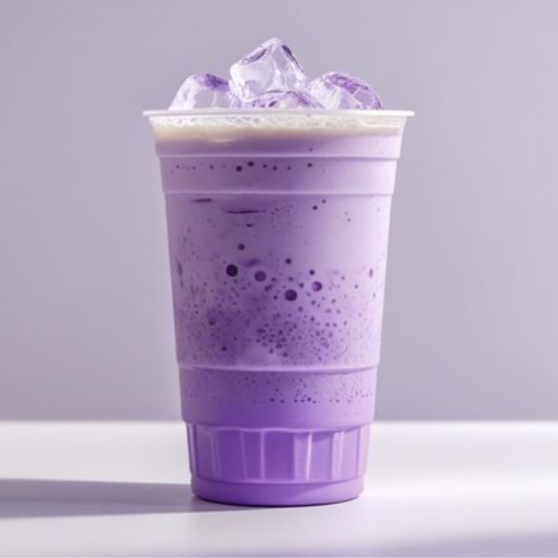 Deliciosa bebida taro con leche y hielos