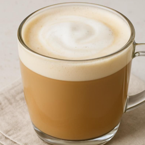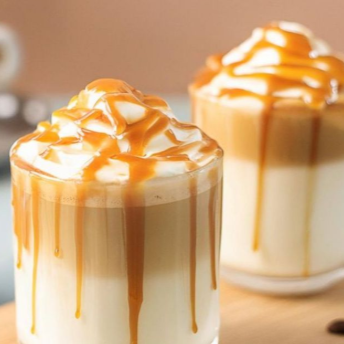 Leche con espresso, vainilla y toque de caramelo.