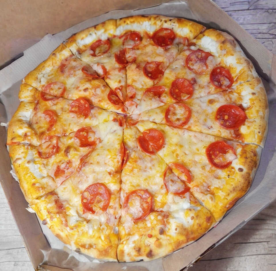 Chorizo, jamón, peperoni, salchicha, champiñones y quesos
