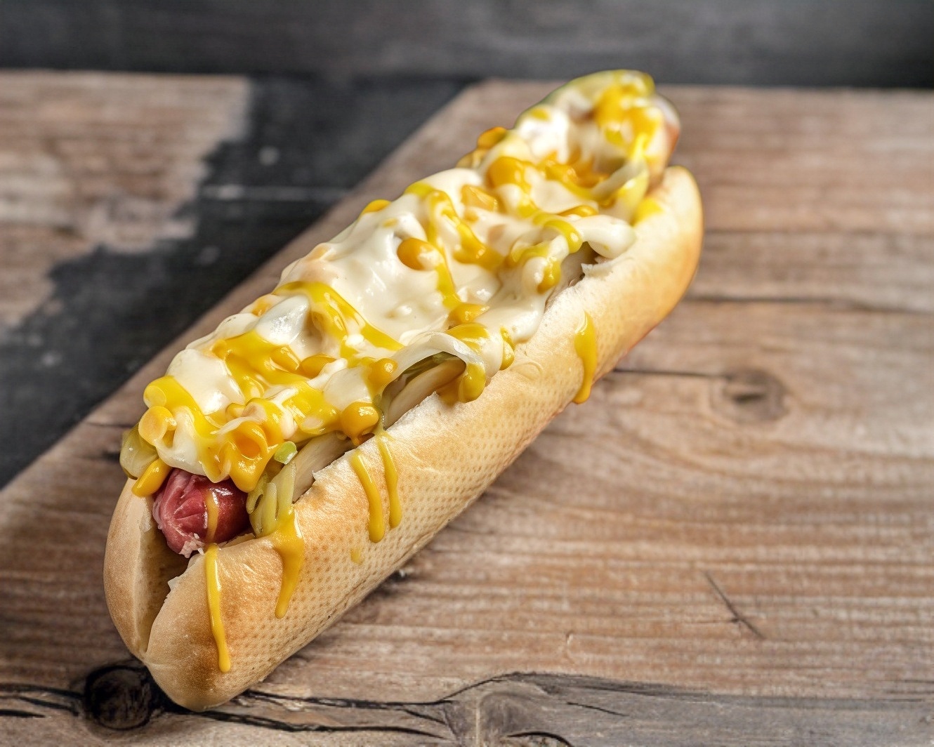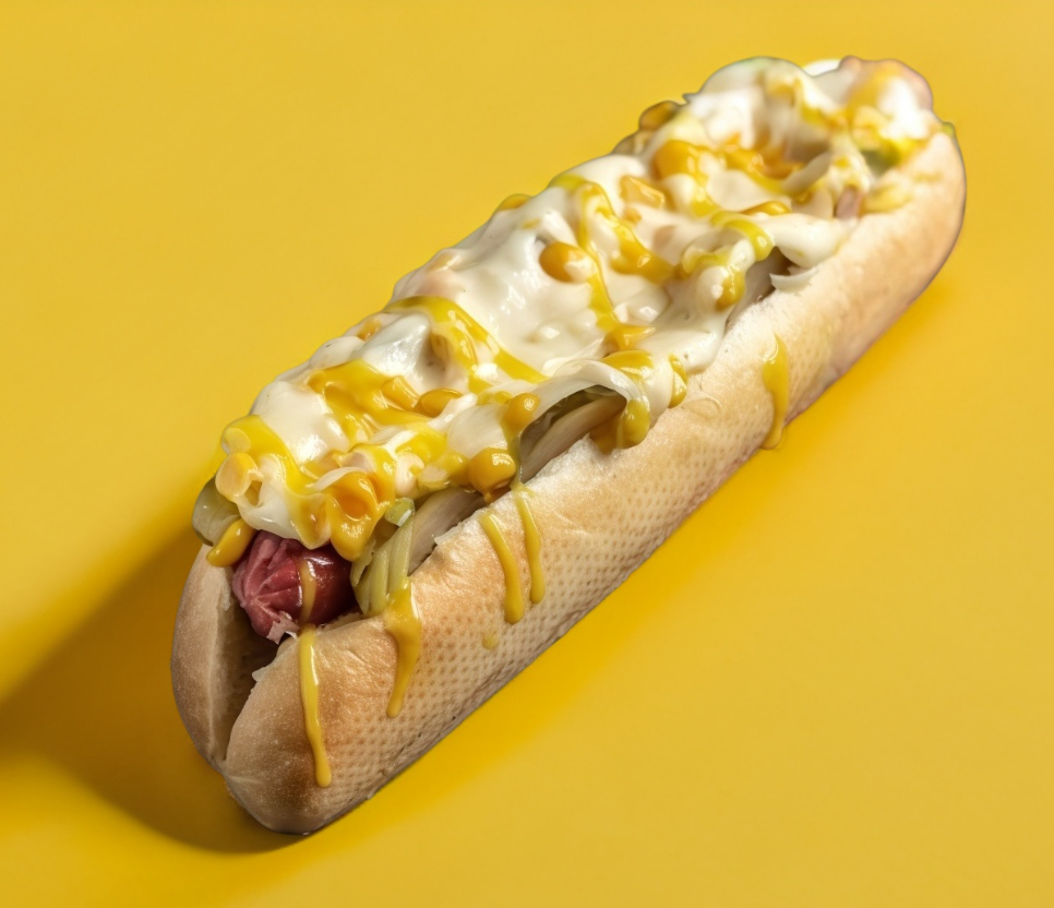 Jamón, queso oaxaca, queso amarillo, salchicha, verdura, aderezos.