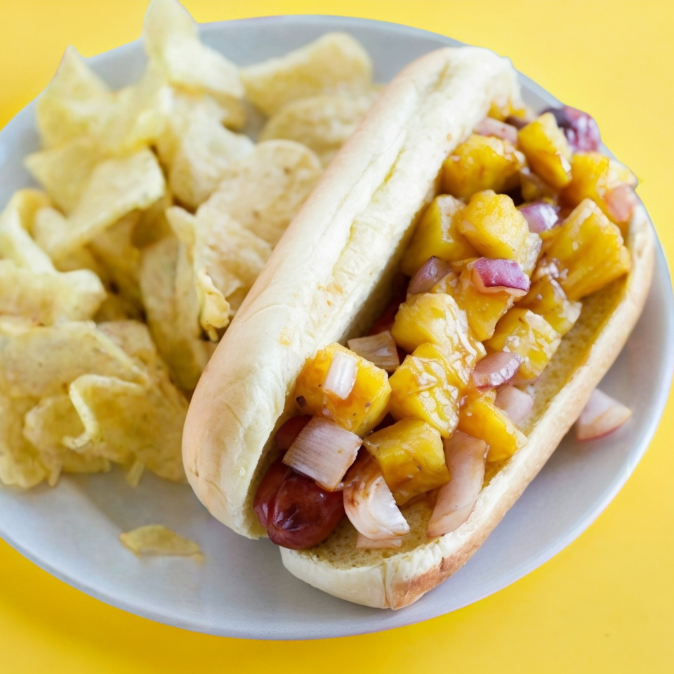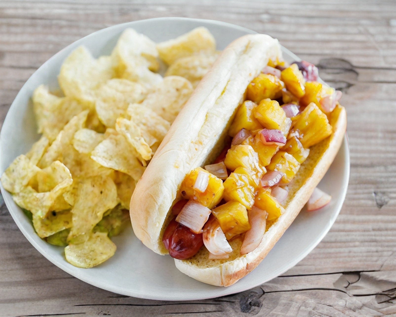 Piña, jamón, queso oaxaca, queso amarillo, salchicha, verdura, aderezos.