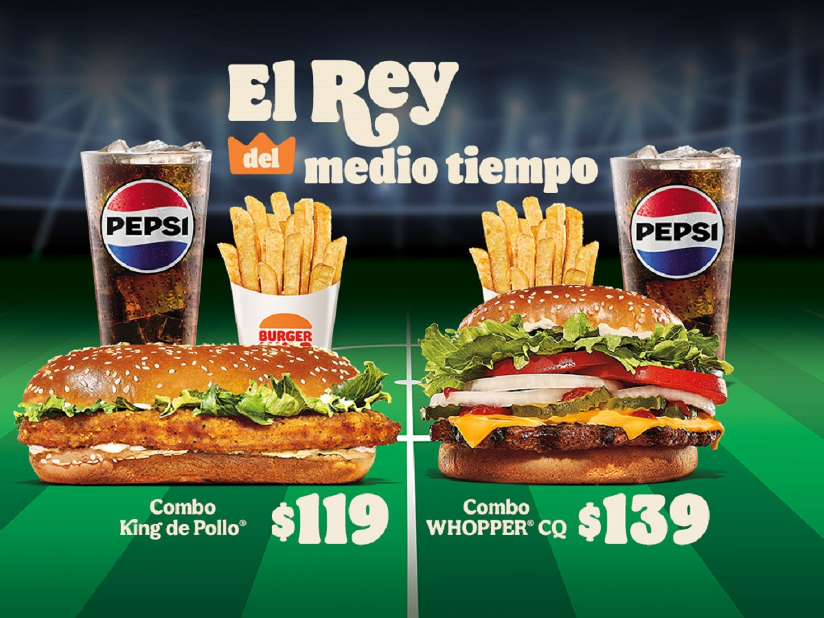 El antojo que todo Rey necesita. Elige entre hamburguesa con queso o 6 nuggets + papas chicas. (760 cal., 368 gr.)