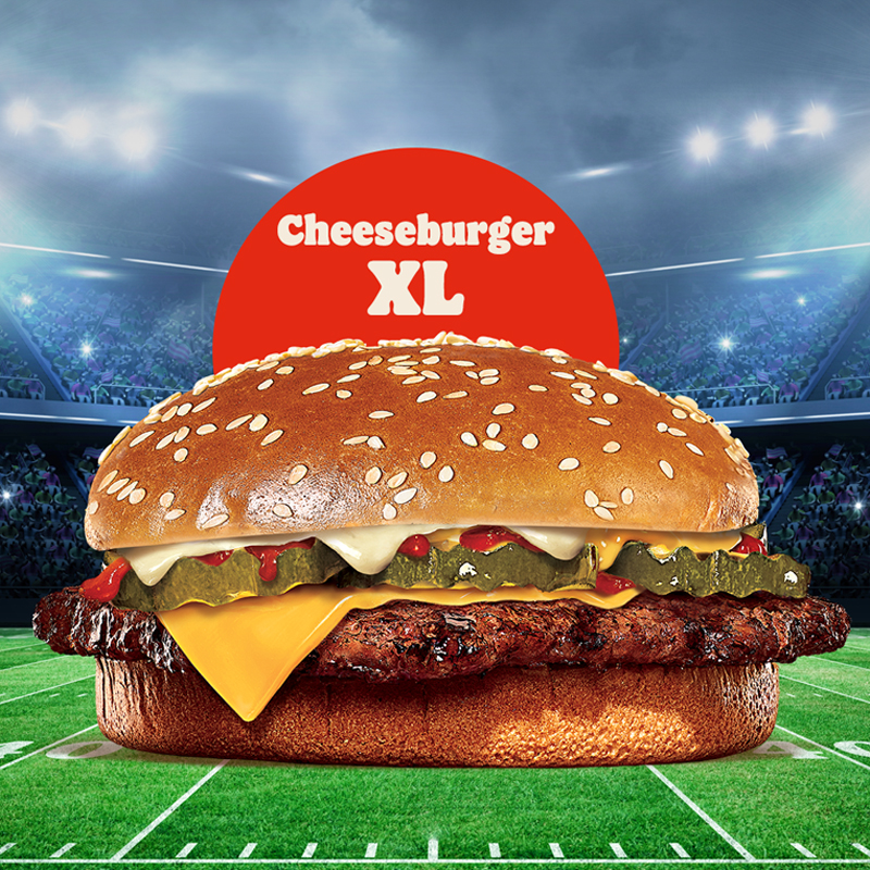 Sabor digno del Rey para un juego de otro nivel. Carne de res a la parrilla, queso amarillo, mayonesa. mostaza, catsup y pepinillos sobre un pan ligeramente tostado con semillas de ajonjolí.