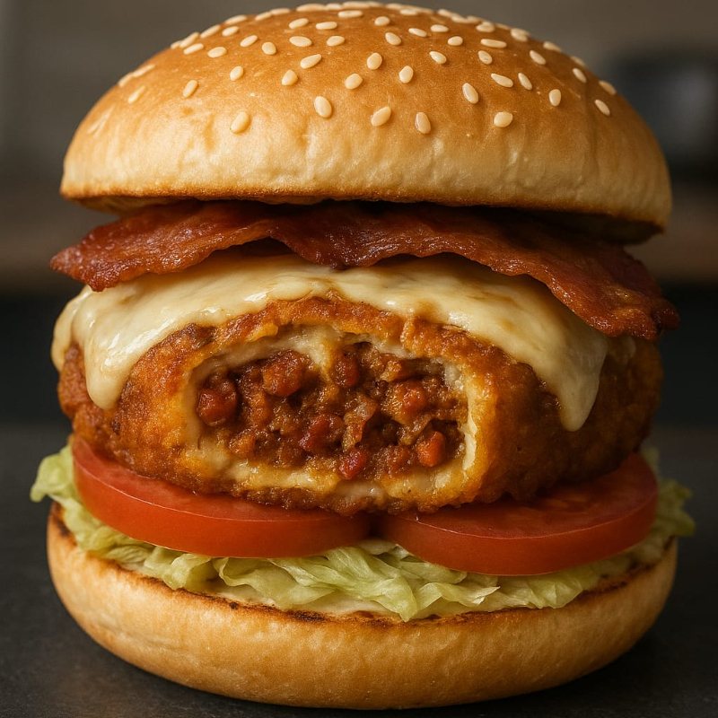 Dejate conquistar por esta bomba de sabor;jugosa carne a la parrilla ,tocino crujiente,una irresistible mezcla de quesos oaxaca y americano,acompañados de nuestro chorizo ahumado artesanal con un toque generoso de nuestra salsa BBQ.Una explosion que vas a querer probar una y otra vez