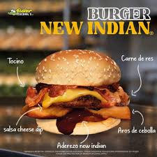 Aderezo new indian, tocino, salsa cheese dip, carne de res y aros de cebolla.