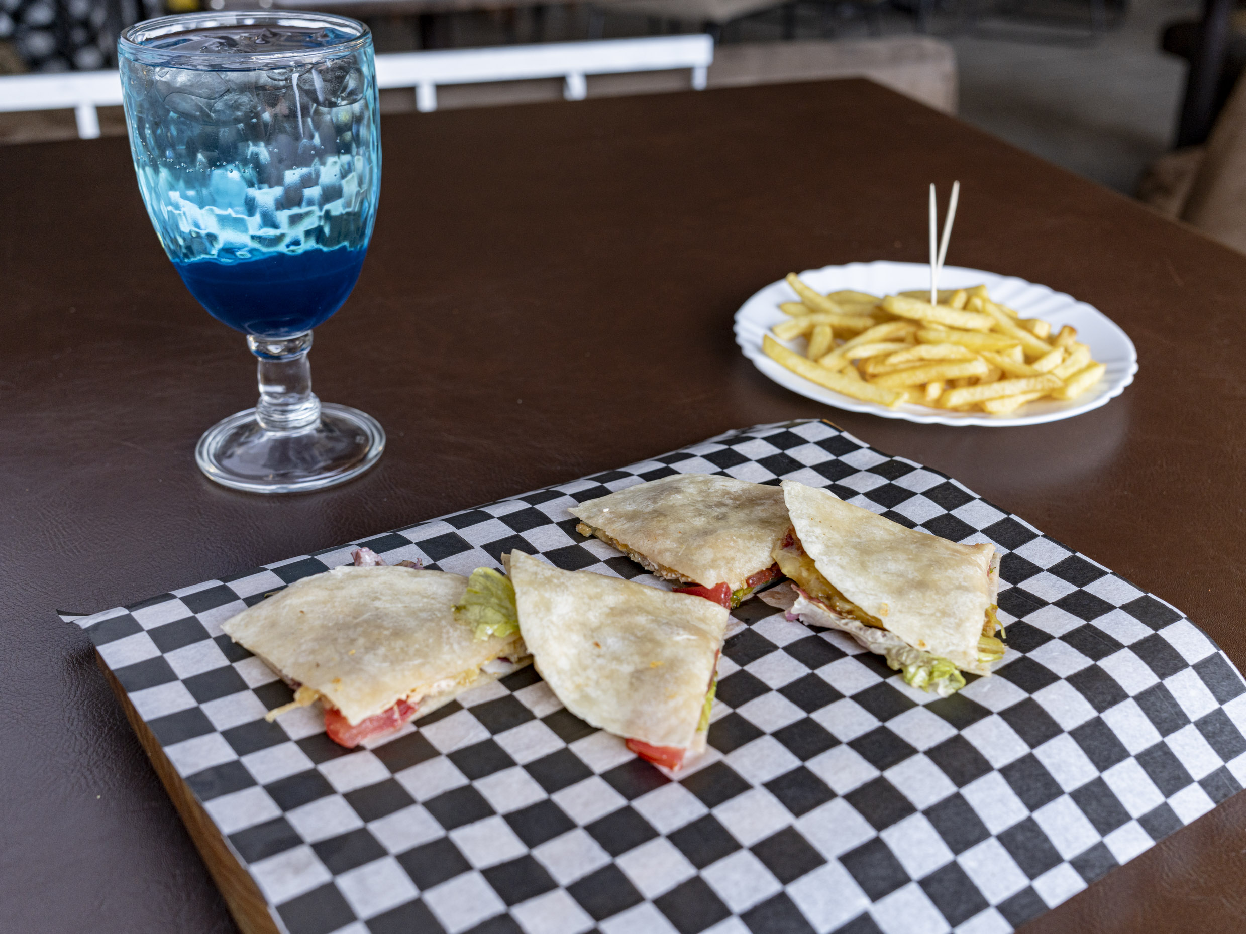Elige un ingrediente: queso manchego y jamón (pierna o pavo), manchego y bistec, manchego y chorizo, manchego y pollo.