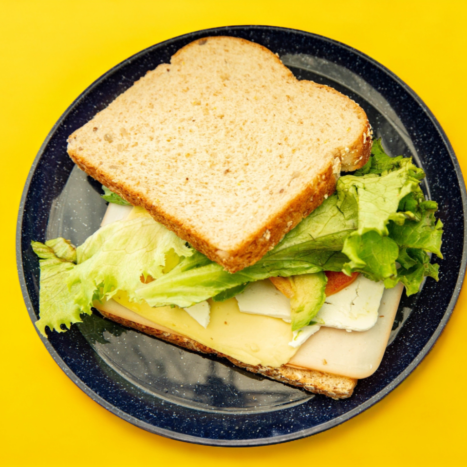 50 gr de jamón de pechuga de pavo y 40 gr de queso manchego.