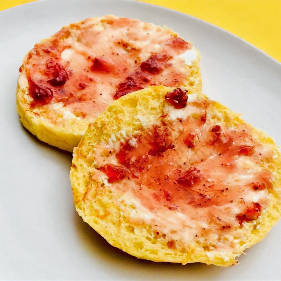 Acompañados con queso crema y mermelada de fresa.